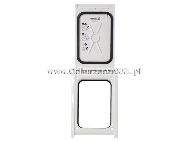 Drzwiczki gniazda ssącego Retraflex® II są montowane na etapie końcowego wykończenia instalacji . W zależności od kierunku chowania się węża ssącego (do góry lub do dołu) można je zamontować z klapką otwieraną do góry lub do dołu. Dzięki teleskopowej konstrukcji uszczelnienia posiadają tolerancję różnicy grubości tynku nawet do 2,5 cm. Drzwiczki są wykonane z wysokiej jakości, estetycznego i bardzo wytrzymałego na ścieranie tworzywa sztucznego. Uniwersalny design sprawia, że idealnie pasują do wystroju wnętrza domu.