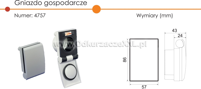 Wymiary gniazda: szer. 8,6cm x wys. 5,7cm