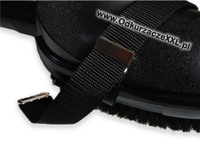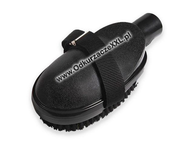 Z opaską elastyczną ułatwiającą trzymanie szczotki w ręce. Wykonanie z tworzywa wraz z włosiem syntetycznym.
